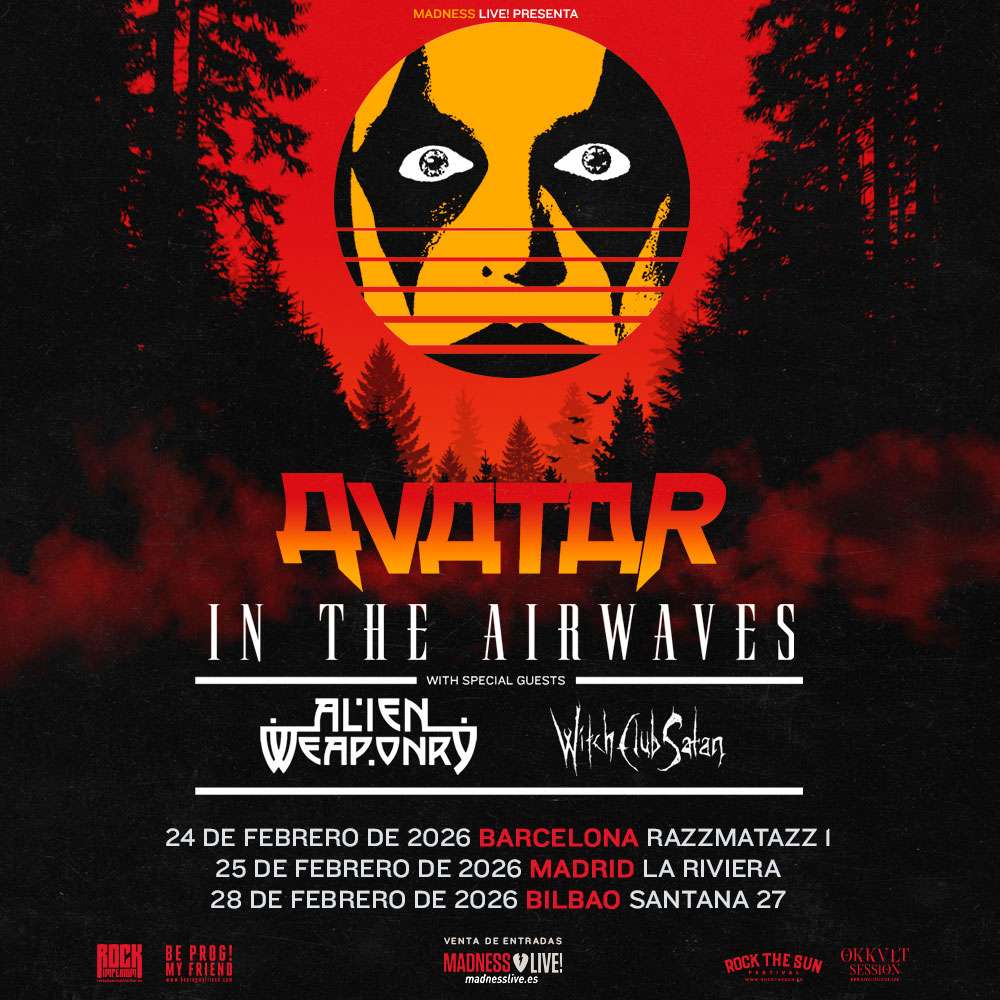 La expectación de la gira ‘In The Airwaves‘ de los suecos Avatar junto a Alien Weaponry y Witch Club Satan, que ejercerán de bandas invitadas, crece según se van acercando las tres fechas de Barcelona, Madrid y Bilbao (sábado 28 de febrero en la Santana 27). Ya que la promotora Madness Live ha anunciado días atrás que se encuentran a la venta las últimas entradas por lo que seguramente la descarga bilbaína colgará el cartel de ‘Sold Out’.