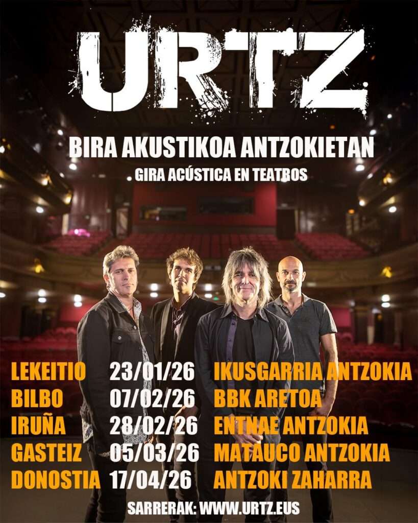 Por último, se muestra el cartel con las primeras cinco fechas de esta gira tan especial e íntima por parte de Urtz, en la que destaca la del 7 de febrero (20:00 horas) en la sala BBK de Bilbao: